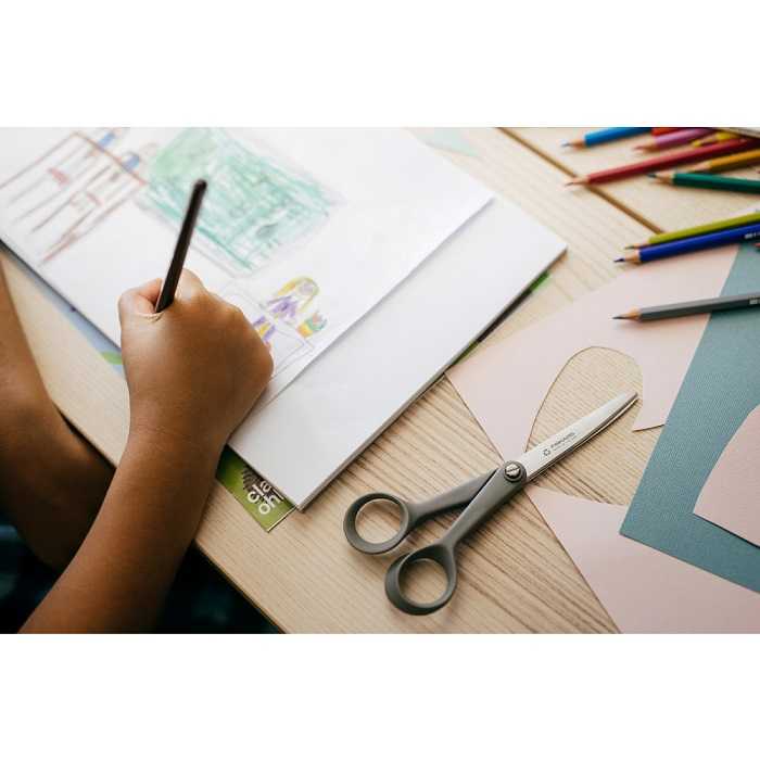 Універсальні ножиці Fiskars ReNew 17 cm (1062545) з короткими безпечними лезами з нержавіючої сталі з переробленої сталі мають закруглені кінчики, безпечні для дітей. Ергономічна ручка, виготовлена з переробленого пластику та відновлюваної целюлози, забезпечує високий комфорт та повний контроль при різанні. Ці ножиці виробляються у Фінляндії з використанням екологічно безпечних методів та проходять ручну перевірку для забезпечення найвищої якості. Вони також упаковані в 100% перероблений та перероблений папір.