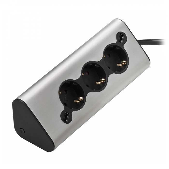 Мережевий подовжувач WMF Ambient (419040011) ідеально підходить для кухонної техніки WMF. Кутаста форма забезпечує гарне прилягання до стіни та стільниці. Перехідник має 3 розетки та 2 входи USB, а також функцію підсвічування.