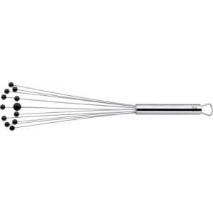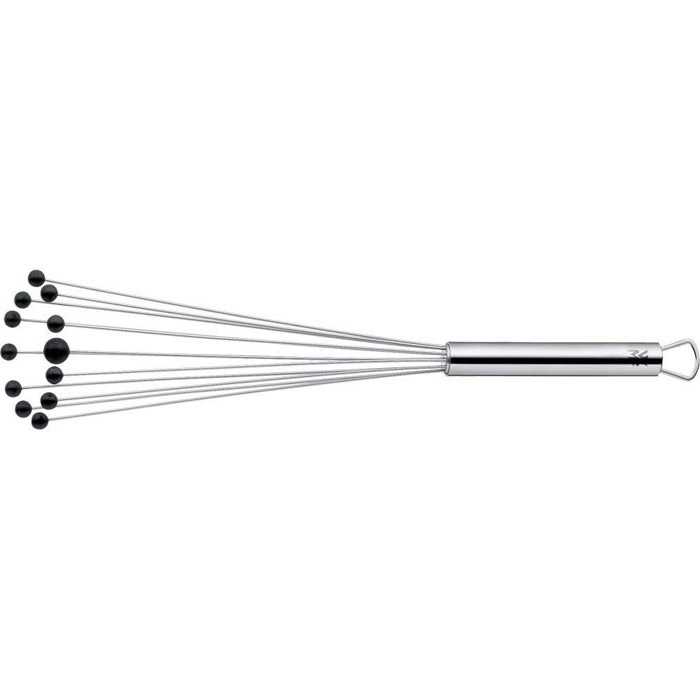 Венчик для взбивания с шариками 27 см WMF Profi Plus (18.7300.6030) с ручкой для подвешивания на крючок, имеет прочную конструкцию из прочных материалов. Благодаря шарикам венчик подходит для деликатных поверхностей и достигает углов посуды и доставляет гораздо больше воздуха в смешанные ингредиенты, а также отлично разбивает комки. Предназначена для взбивания пены, яиц для омлета, замешивания соусов и т. д. Подходит для посудомоечной машины.