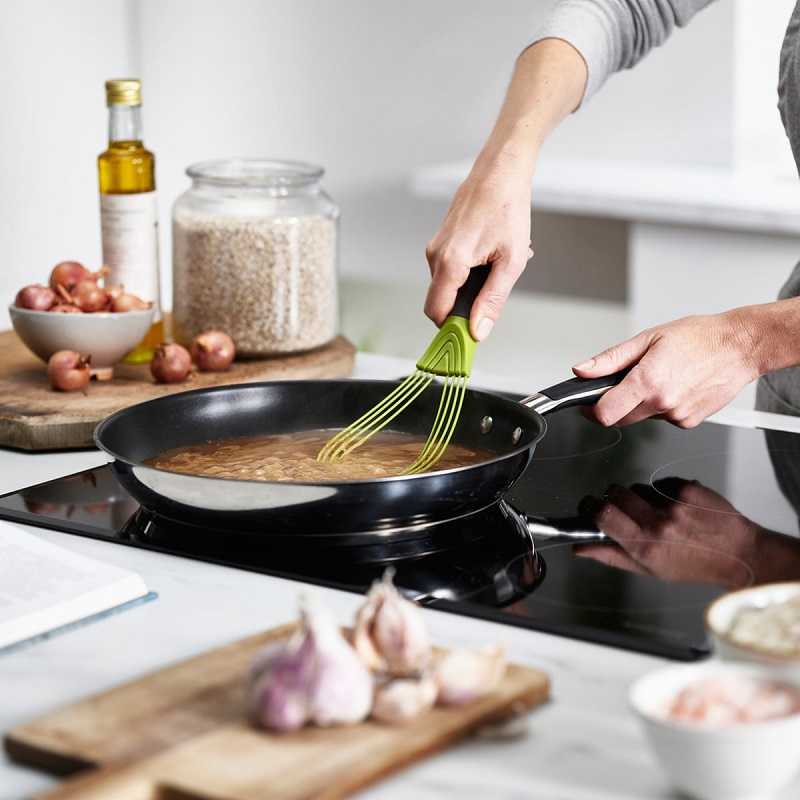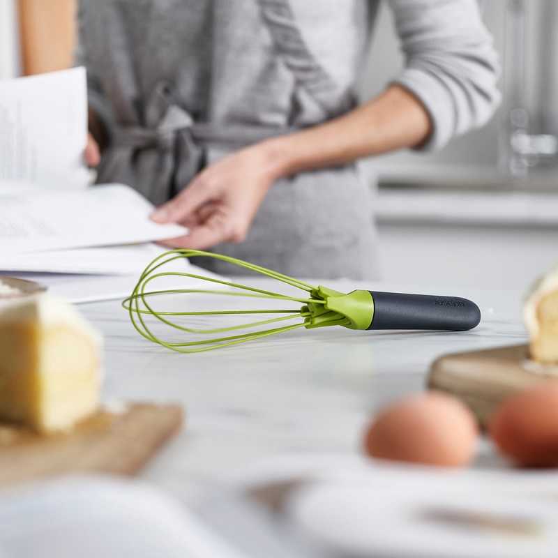 Венчик Joseph Joseph Twist™ (10539) объединяет два важных кухонных инструмента в одном шикарном дизайне. Типично веселые формы и цвета Joseph Joseph превращают приготовление пищи в удовольствие. Прежде всего, Twist - это скребок для сковороды и деревянная ложка: в плоском положении он идеально подходит для приготовления соусов или работы с плоскими сковородками. Простым поворотом ручки Joseph Joseph Twist превращается в эффективный «нормальный» венчик, каким мы его знаем. Например, вы можете взбить сливки или яичные белки или смешать йогурт.