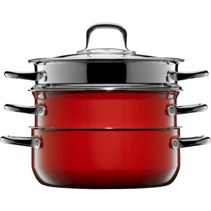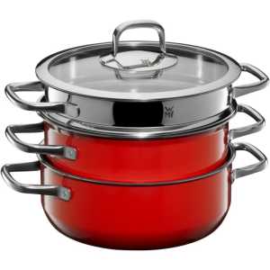 Набір посуду WMF Fusiontec Compact Red 3шт. (0515625290) комплект з: 2 каструлі (діаметром 22 см), вставка для приготування на пару та кришка.