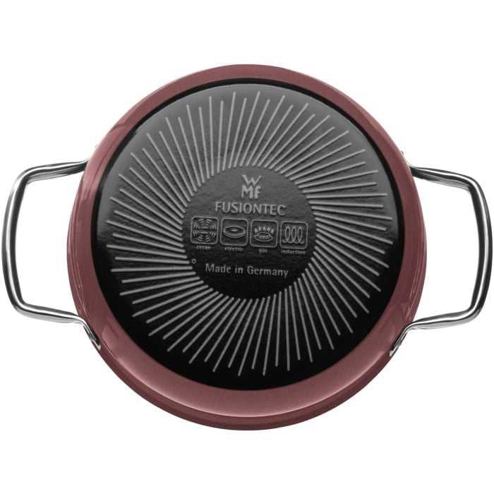 Кухонний посуд WMF Fusiontec – ваш надійний партнер на кухні на все життя: він обіцяє безкомпромісну продуктивність та красу, що витримує випробування часом. Її інноваційний дизайн включає унікальний сплав, що поєднує в собі кращі якості існуючого посуду в одному універсальному матеріалі. Мінеральний посуд Fusiontec, створений для того, щоб виділитися з натовпу, має преміальне оздоблення, доповнене мерехтливими частинками та металевим блиском, а також унікальний процес випалу та загартування, який сплавляє керамічні шари у винятково міцну поверхню. Виготовлена в Німеччині з урахуванням 130-річного досвіду WMF, вона має 30-річну гарантію* та оснащена ручками зі зниженим нагріванням, широкими краями для розливу та елегантними скляними кришками, що полегшують приготування їжі.