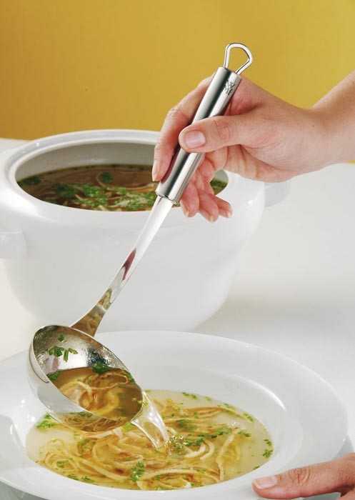 Половник WMF Profi Plus 30 см (1871016030) призначений для розливання різних супів, гасіння, компотів і т. д. Має міцну конструкцію з міцних матеріалів. З ручкою для підвішування на гачок.