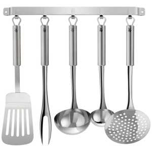 Набір інструментів кухонних WMF Profi Plus (1871529990) пропонує інструменти для всіх ваших кулінарних потреб, спрощує час на кухні. Це виключно міцне кухонне начиння, виготовлене з приголомшливого матеріалу Cromargan®, оснащене практичною петелькою для підвішування на полиці, що додається, а також підходить для миття в посудомийній машині, що забезпечує легке очищення і ідеальну гігієну. Чудова і практична серія кухонних інструментів Profi Plus зробить все це. Від стильного посуду до зручних інструментів для приготування навіть найскладніші завдання стануть легкими. Profi Plus поєднує водонепроникні матеріали преміум-класу з непідвладною часу естетикою і довговічною конструкцією. У комплект входить: