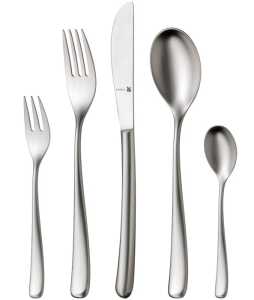 Набір столових приладів WMF Vision 30 предметів (1271916330) з подовженою стрункою формою, спокусливими вигинами та шовковистою матовою поверхнею – розкішними елементами дизайну, які разом створюють ефект, що незмінно притягує погляди. Цей вражаючий дизайн відрізняється ексклюзивною технологією Cromargan Protect®, унікальною обробкою поверхні, яка забезпечує виняткову стійкість до подряпин та ознак щоденного використання, а також спрощує догляд. Цей ергономічний набір столових приладів, ретельно виготовлений майстрами, ідеально лежить у кожній руці та виготовлений з використанням усіх навичок та ноу-хау, які зробили популярність WMF, включаючи ножі зі вставленими лезами з кованої сталі, які зберігають свою гостроту та еластичність з часом. Його можна мити в посудомийній машині для швидкого та легкого очищення. Він поставляється в гарній коробці для столових приладів для безпечного та зручного зберігання.