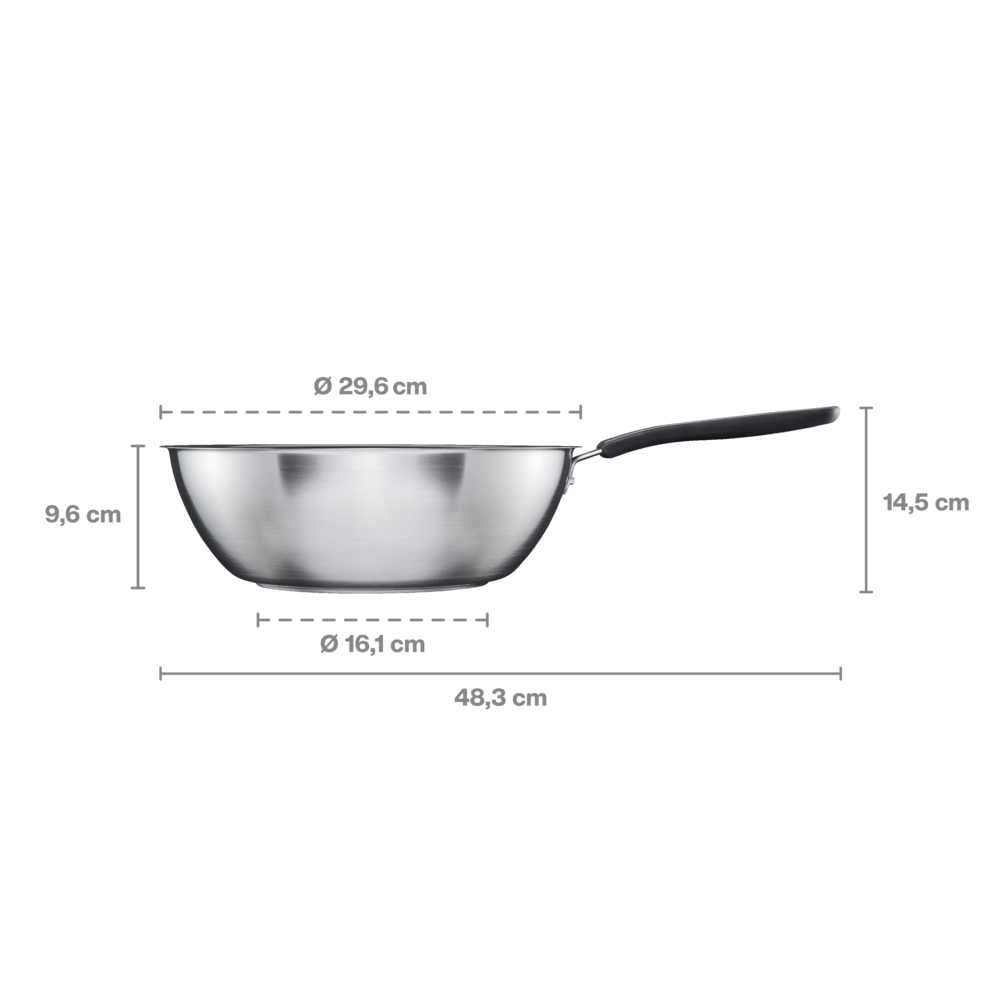 Сковорода WOK Fiskars Functional Form™ 28 см (1072313) ідеально підходить для швидкого та смачного приготування багатьох страв, особливо овочів, м'яса та східних страв, а також смаження та карі. Вок розміром 28 см виготовлений на 90% із міцної переробленої нержавіючої сталі. Його також можна використовувати на всіх плитах, включаючи індукційні. Продуманий дизайн, який підходить для швидкого приготування, антипригарне керамічне покриття Ceratec™, що не містить пластику, легко чиститься і можна мити в посудомийній машині. Вок Functional Form оснащений тришаровим дном, яке дозволяє оптимально розігрівати їжу, а зручна ручка ніколи не перегрівається навіть під час підрум'янювання. Максимальна температура смаження у вічі становить 270°C, і під час приготування його можна поміщати безпосередньо в духовку (до 150°C).