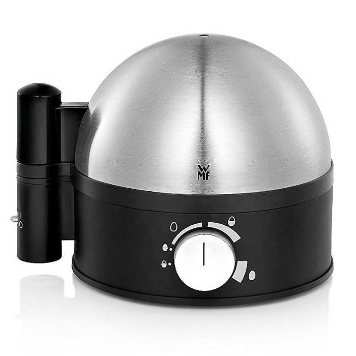 Яйцеварка WMF STELIO (61.3024.1111) с крышкой из матового метала Cromargan® и нагревательной оболочкой из нержавеющей стали позволяет одновременно готовить до 7 яиц. Электроника, которая регулирует время приготовления, позволяет одновременно и точно приготовить яйца, приготовленные до мягкого, среднего или твердого состояния. Отдельный переключатель включения / выключения, звуковой сигнал в конце времени приготовления и устройство для намотки шнура делают яйцеварку STELIO незаменимой на кухне.